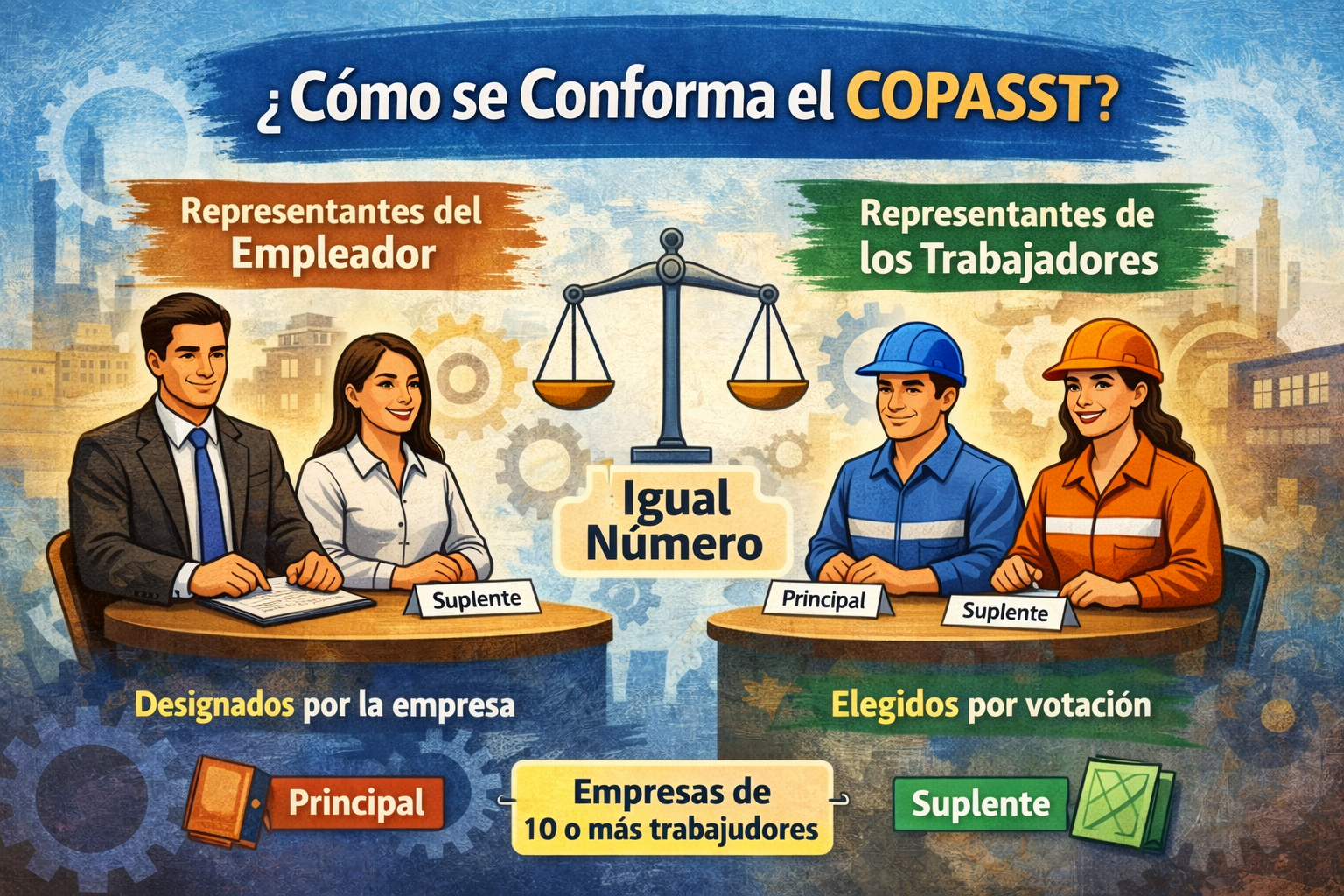 Se denomina paritario porque está conformado por un número igual de representantes del empleador y de los trabajadores, garantizando equilibrio en la toma de decisiones y en la discusión de los temas de SST.